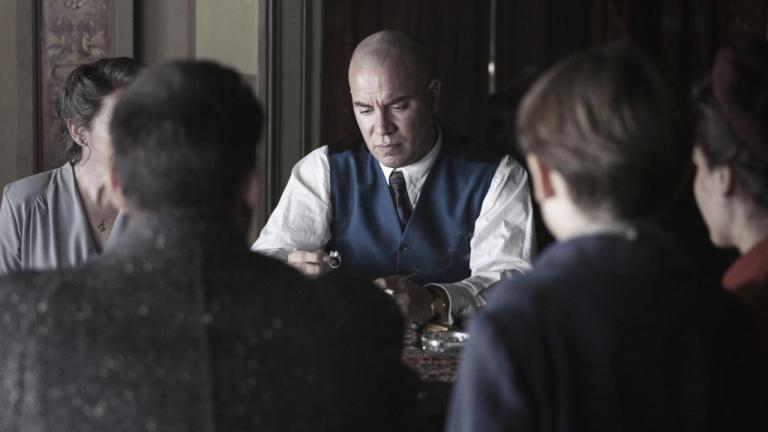 Riphagen’s talent was that he was a fabulous liar and he was able to fool everyone he dealt with, from the Nazis to the Jews to the members of the Dutch Resistance to his cronies and even to his loyal wife, Greetje. Whenever his back was against the wall, he would say the right things that would get people to trust him all over again. The only one (according to the movie, at any rate) who could see through him was Jan van Liempd, a Dutch policeman and undercover resistance fighter. Throughout RIPHAGEN, Jan (actor Kay Greidanus) and Dries (actor/singer Jeroen van Koningsbrugge, who looks like a Dutch Vin Diesel with his shaved head and brawny appearance) perform a cat-and-mouse chase, except that Jan is the unwitting mouse to Dries’ cat.
