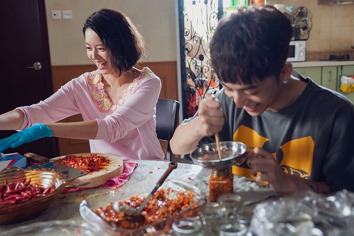 Coba Cheung (Cantopop boy band member Edan Lui Cheuk-on/呂爵安, making his film debut) is a 20-something young man who lives with his parents Rita (Gigi Leung/梁詠琪) and Alan (Ronald Cheng/鄭中基) in their modest village house in the New Territories. He works from home as an event promoter but covid and the government’s restrictions on crowds have put an end to that ambition. One day, while watching his hardworking mother whipping up a batch of the family’s super-delicious chilli sauce, he comes up with the idea to make and sell the homemade condiment online. Though shiftless Alan doesn’t want to get involved, Rita is game and the two of them start their cottage industry. With so many restaurants closed and people eating more at home though, the sauce becomes an immediate success and their business quickly grows. It doesn’t take long for the sauce to hit the radar of an enigmatic business entrepreneur who offers to partner with Coba to bring the sauce to the masses.