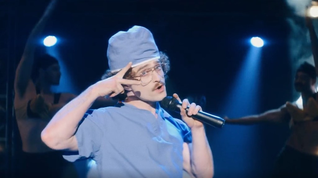 Appel and Yankovic share the writing credits here and the pair load up their script with one over-the-top gag after another. I’ll concede that the Madonna bit overshoots the mark but, overall, this is a very funny movie that will literally have you laughing out loud. With the exception of one number that Radcliffe (sort of) sings, Yankovic does the musical vocals on the slightly tweaked tunes for the film. I suspect there’s an IP issue with that too. Radcliffe, though, is excellent here, playing Yankovic straight up the whole time. His best scene, however, comes when he performs “Like a Surgeon”. It’s reminiscent of Yankovic’s own performance of the number. (The latter is on YouTube and yes, that’s Patton Oswalt as his backup dancer.)
