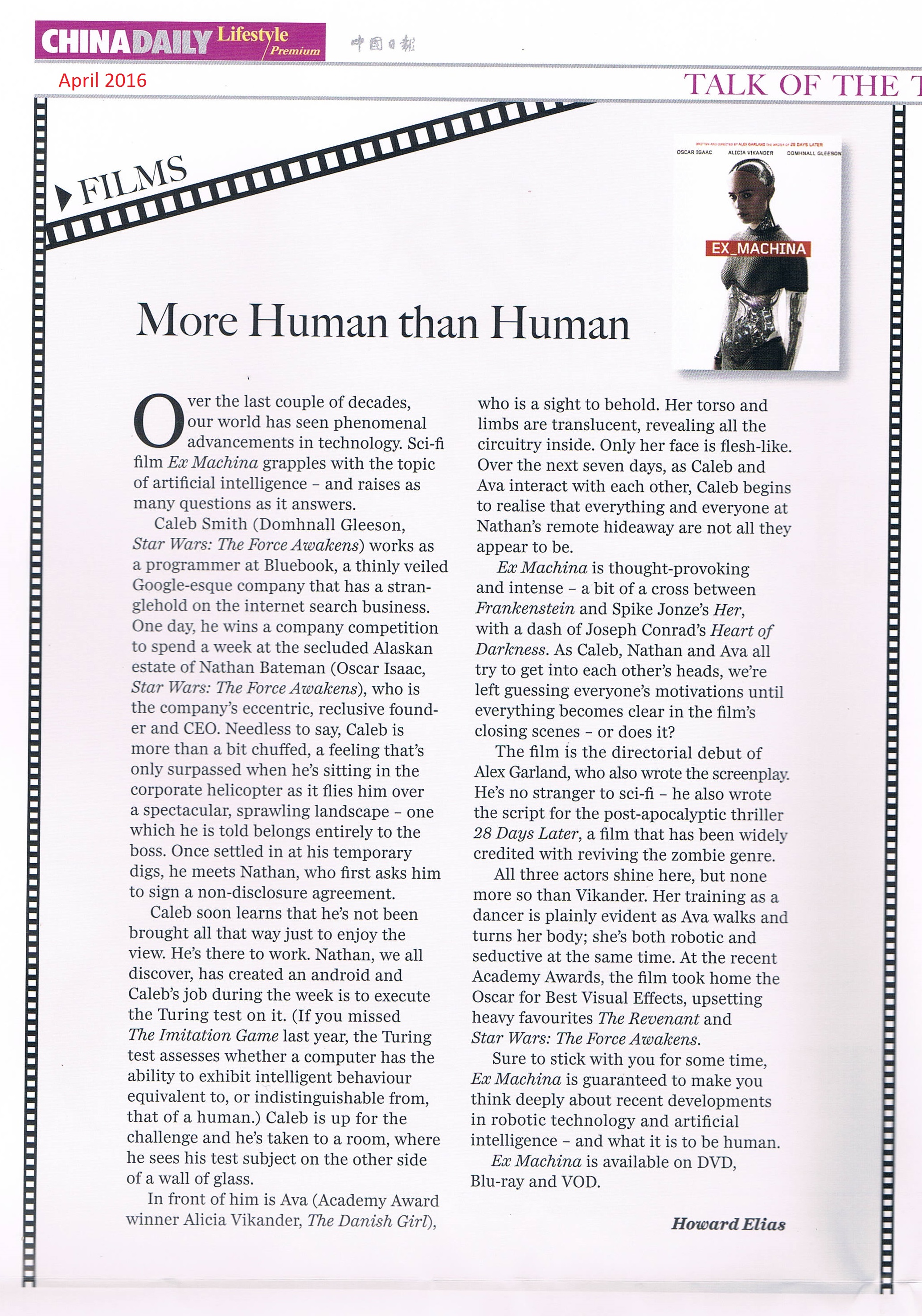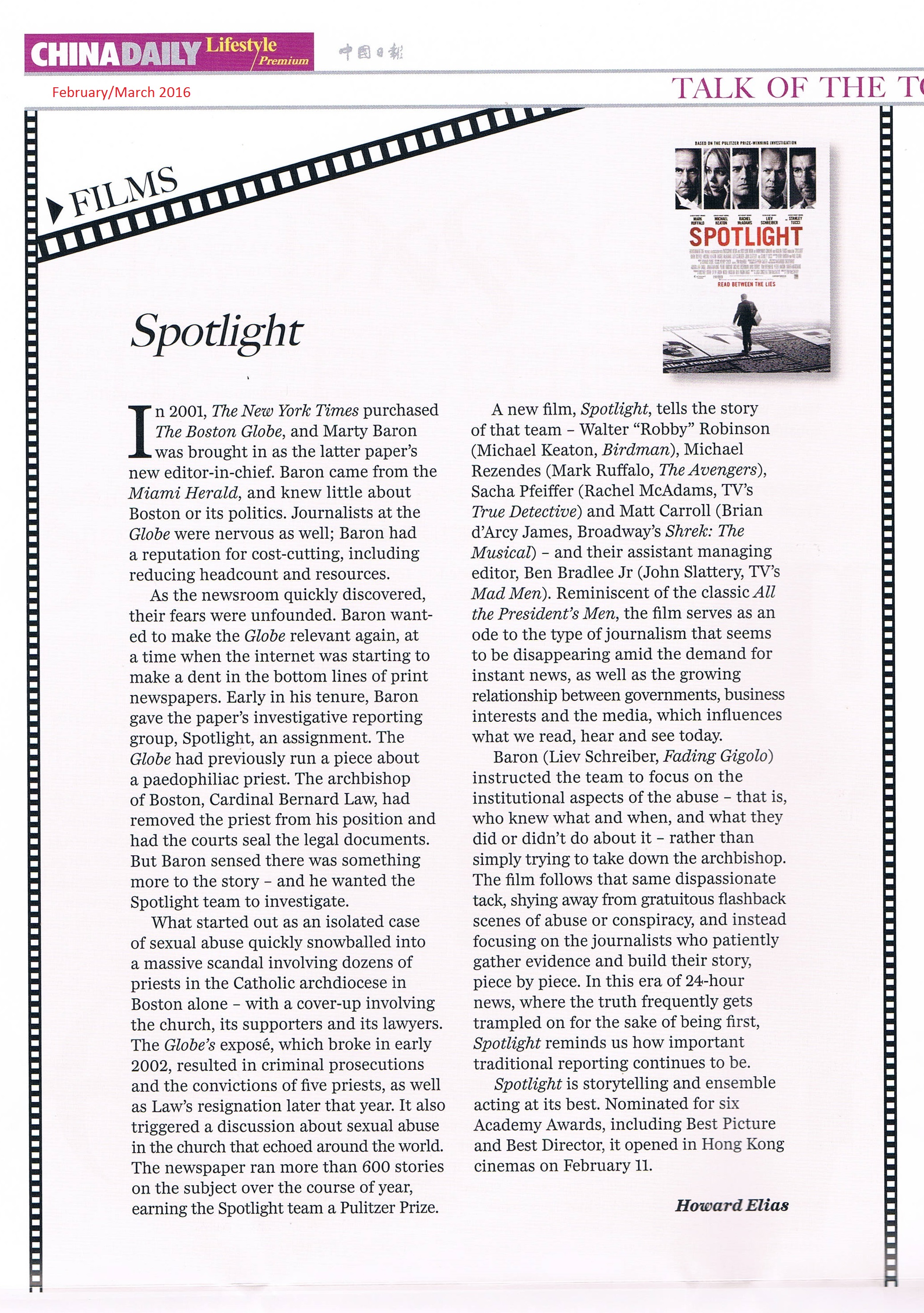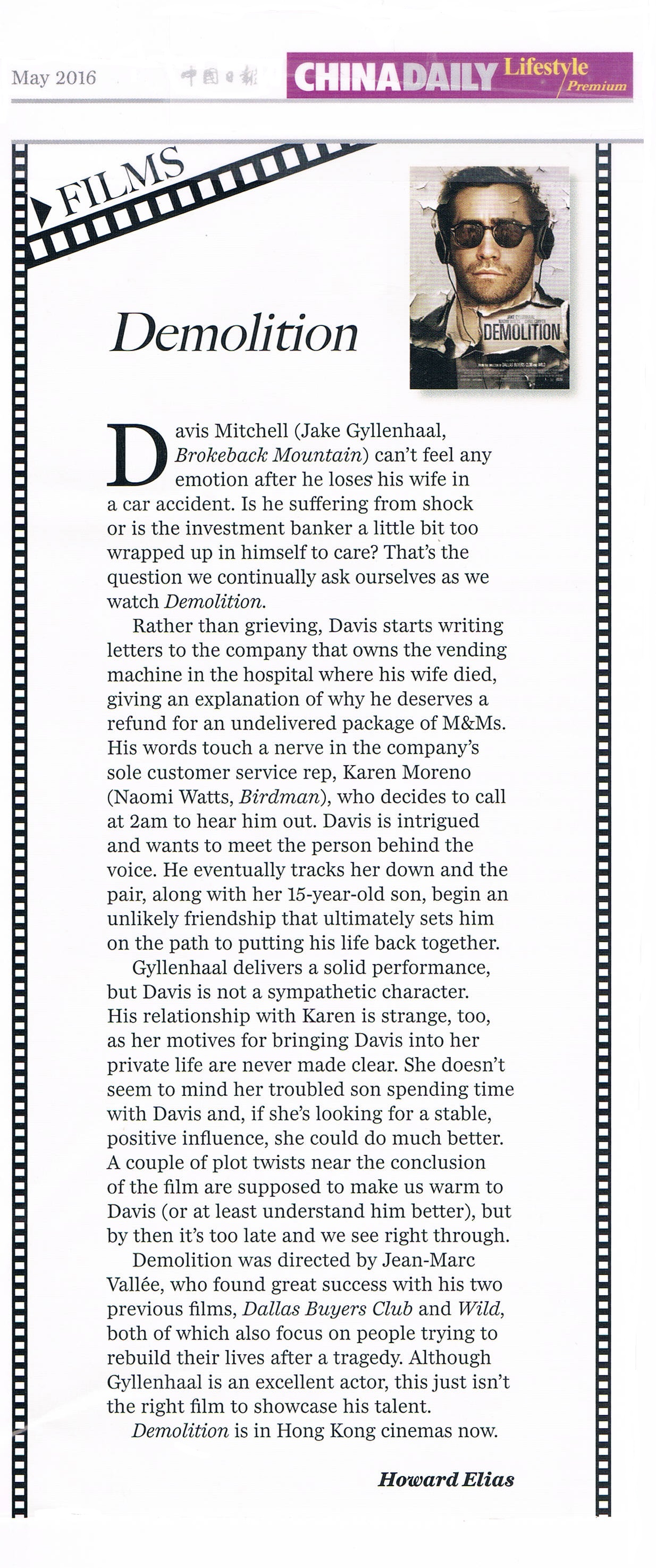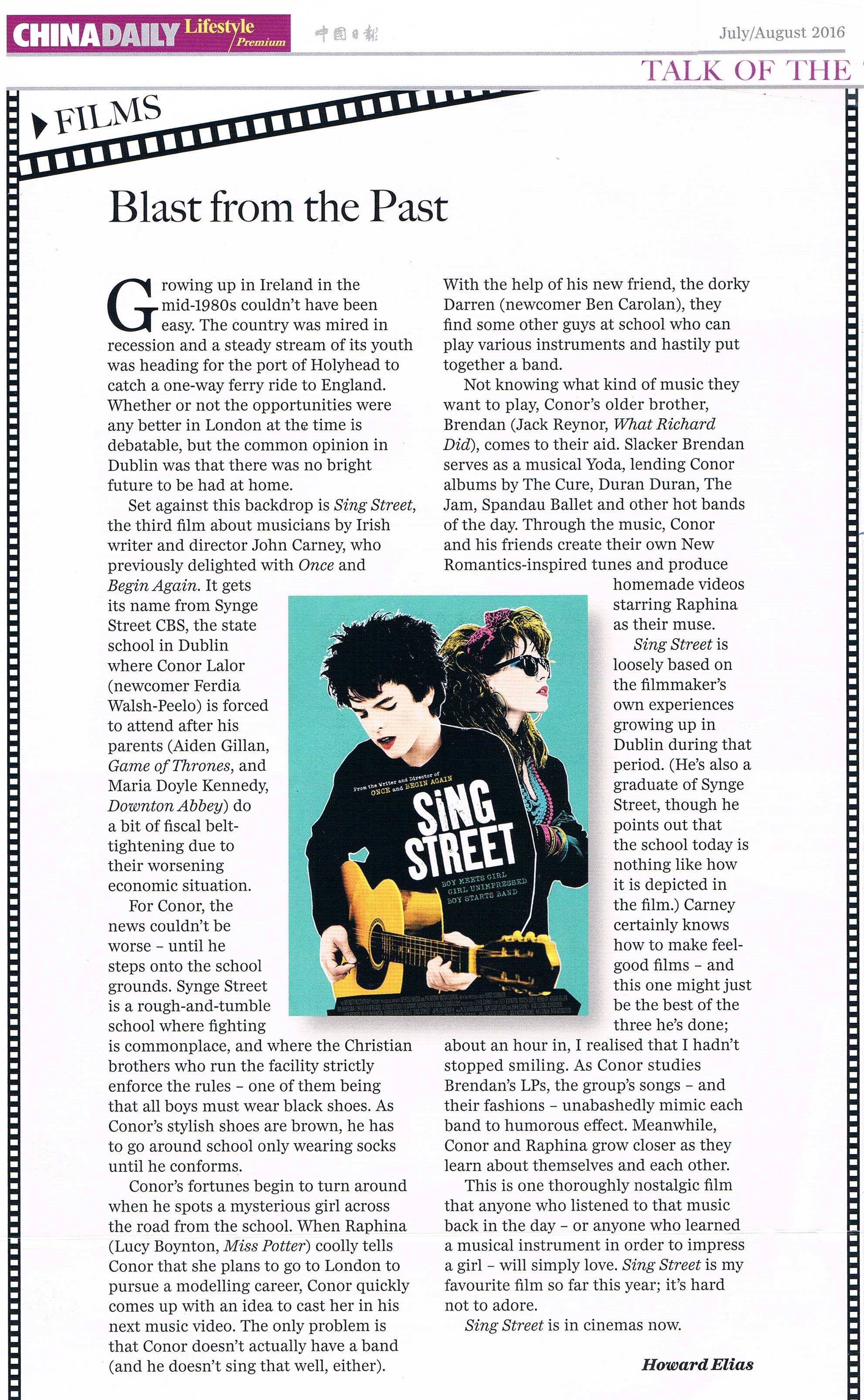 In the China Daily Lifestyle Premium 2016 July & August – Sing Street 2016 May – Demolition 2016 April – Ex Machina 2016 February & March – Spotlight 2016 January – Short Term 12 2015 September – The Tribe 2015 July & August – Love Is Strange 2015 June – The Water Diviner Share this: Click to email a link to a friend (Opens in new window) Email Click to print (Opens in new window) Print Click to share on Facebook (Opens in new window) Facebook Click to share on LinkedIn (Opens in new window) LinkedIn Click to share on Reddit (Opens in new window) Reddit Click to share on WhatsApp (Opens in new window) WhatsApp Click to share on Pinterest (Opens in new window) Pinterest Click to share on X (Opens in new window) X Like Loading...